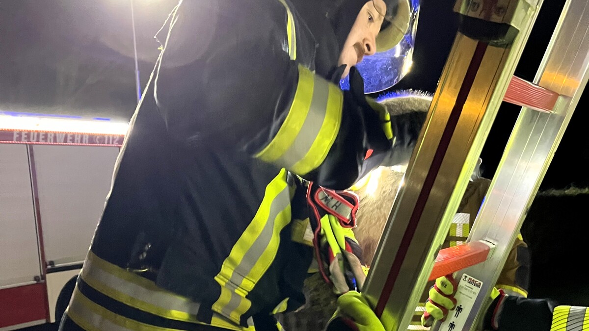 Beim Eintreffen der Einsatzkräfte mit dem Hilfeleistungslöschgruppenfahrzeug wurde die Lage erkundet. Umgehend brachte die Mannschaft eine Leiter in Stellung, über die ein Zugang zum Dach und bis zur Katze geschaffen wurde.
