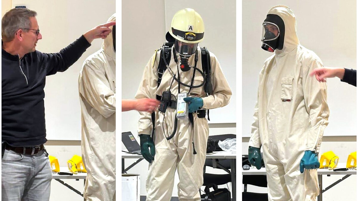 Vorbereitet und geleitet wurde der Übungsabend von Frank Wenking, der hauptberuflich am Institut der Feuerwehr des Landes Nordrhein-Westfalen (IdF NRW) in Münster im Bereich der ABC-Gefahrenabwehr tätig ist, sowie von Simon König, der als Physiker fachliche Einblicke in Atombau, Strahlung, Messverfahren und Schutzmaßnahmen geben konnte.