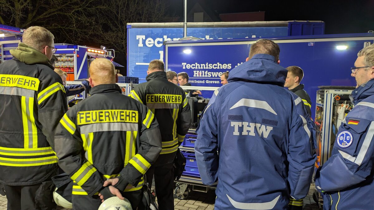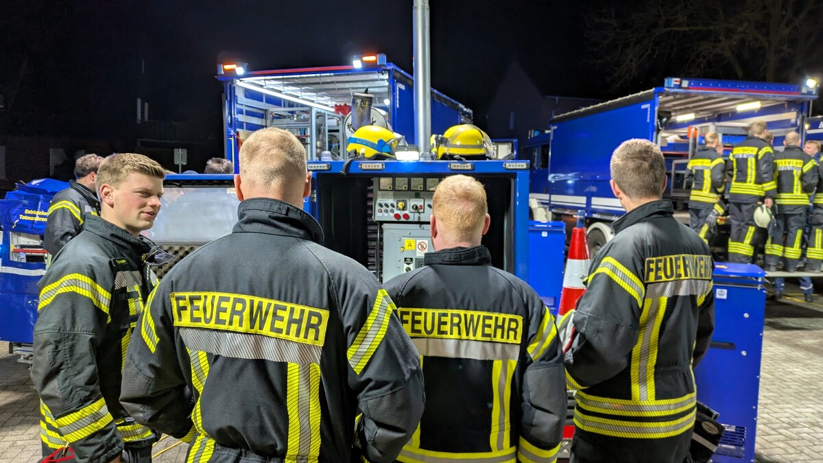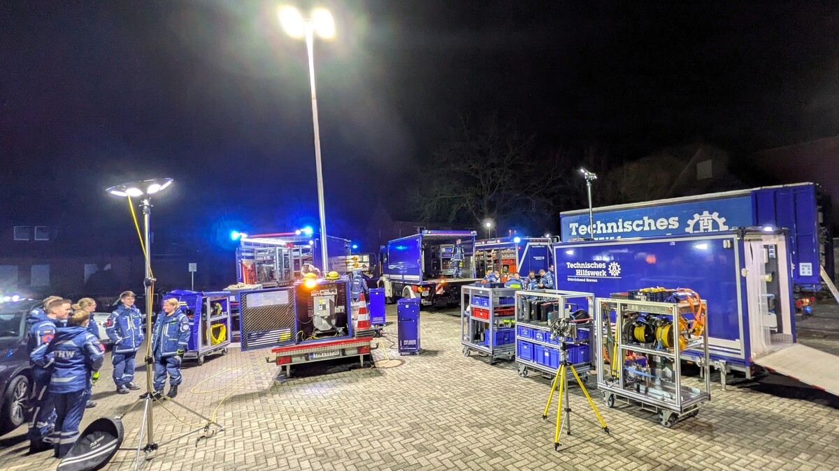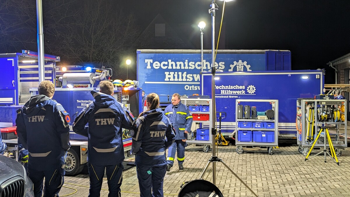 Am Abend des 23. Februar stand für den Löschzug Leer ein besonderer Dienst auf dem Plan: Der Ortsverband Greven des Technischen Hilfswerks (THW) war zu Gast am Gerätehaus, um seine vielfältigen Aufgaben und Einsatzmöglichkeiten vorzustellen. Brandoberinspektor und Löschzugführer Sebastian Robers hatte den Kontakt hergestellt und die Kameraden des THW kurzerhand eingeladen.Bereits bei der Ankunft wurde deutlich, dass die Kameradinnen und Kameraden des THW nicht mit leeren Händen gekommen waren. Mehrere Einsatzfahrzeuge wurden in Stellung gebracht und verschiedenste Gerätschaften aufgebaut. In kleinen Gruppen erhielten die Mitglieder des Löschzugs Leer so die Gelegenheit, sich ein umfassendes Bild von den Fähigkeiten und der Ausstattung des THW zu machen.